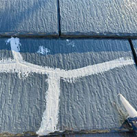 注意点として、DIYで市販のシーリング材を使う方もいますが、絶対にやめてください。屋根に上った際に正常なスレート材を踏み割ってしまったり、誤った方法で隙間を塞いだことで雨漏りに発展する恐れがあります